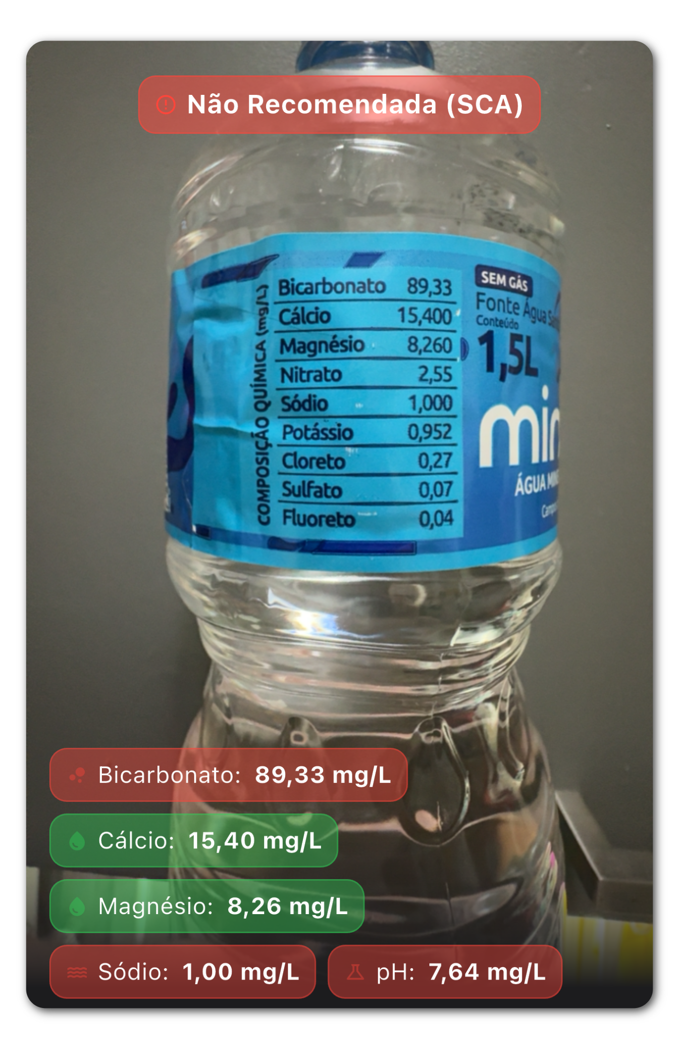Escaneie o rótulo da água.